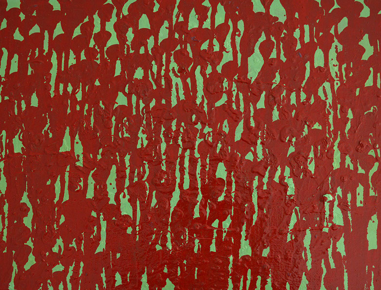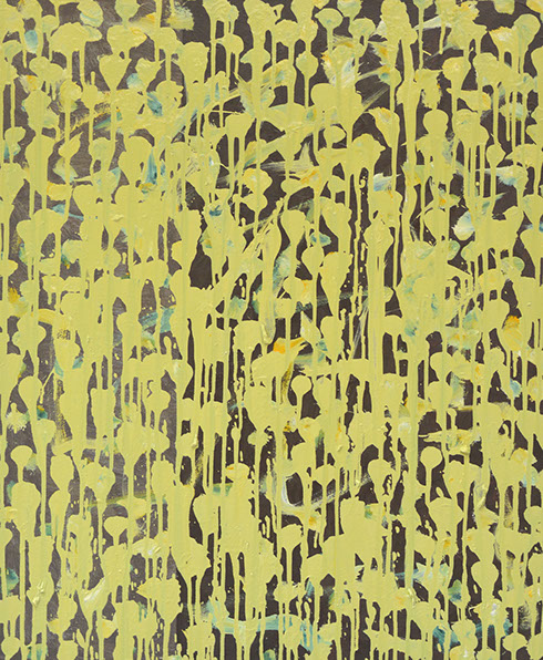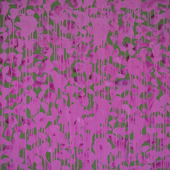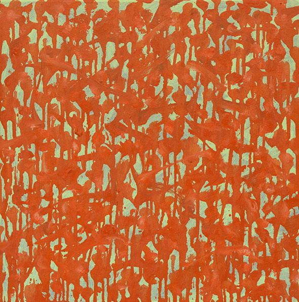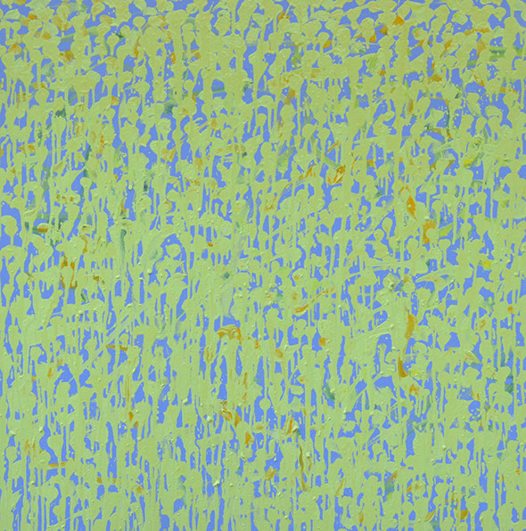In particular this shimmering, glittering effect allows what is essentially a non-representational painting to bring to mind things we see and recognise. For instance this sparkling effect calls to mind the experience of watching light flickering on waves in water. Both paintings allude to things we see, perhaps corn or flowers growing in a field, or rain on a window. What’s brilliant is the paintings can melt from one of these experiences to another, as we look at them, and even from there to a more academic, abstract investigation of colour theory.